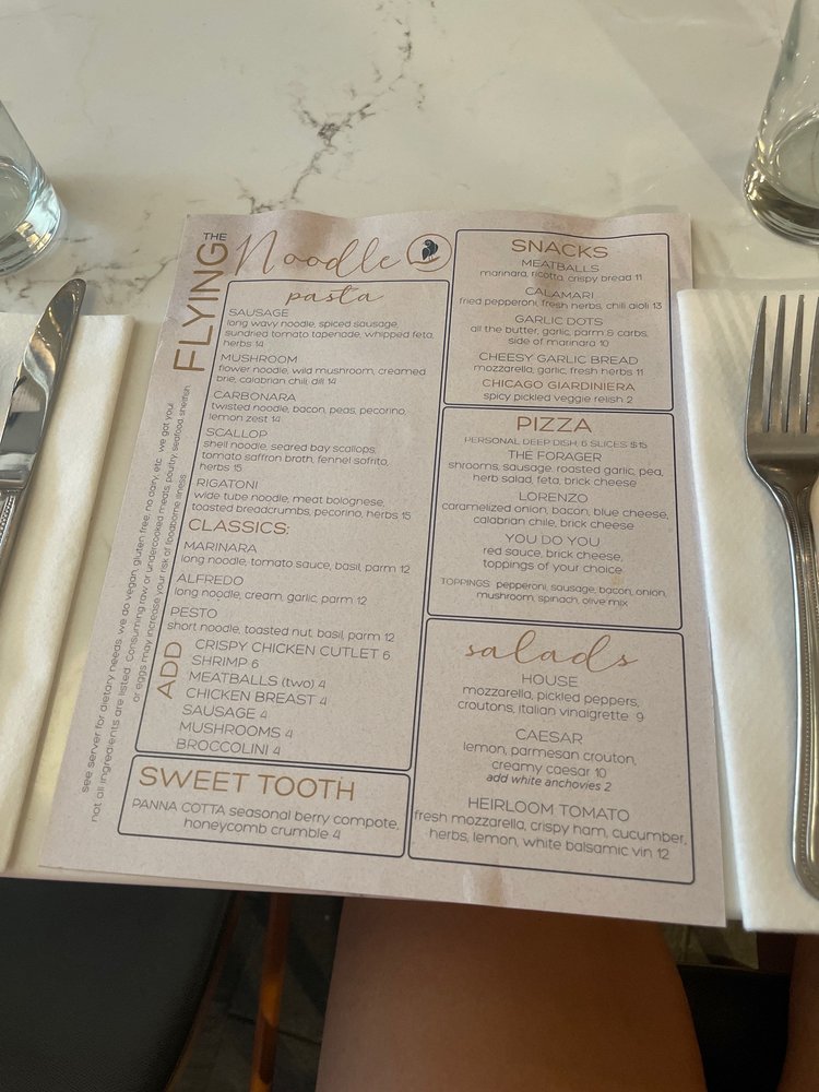 Introducing The Flying Noodle, a cozy cocktail bar in Traverse City offering a diverse menu of Italian dishes and noodles. This charming spot features a welcoming atmosphere with options for Pescatarians, Vegans, and Vegetarians. The menu boasts a variety of salads, meatballs, and freshly made noodles such as rigatoni and bucatini. Customer favorites include the pesto with bread, bolognese sauce, and alfredo with shrimp. Their golden beet app and personal deep dish are also highly recommended. The restaurant provides excellent service and a casual chic ambiance, perfect for a night out. With delicious food, friendly staff, and a delightful dining experience, The Flying Noodle is a must-visit spot in Traverse City. Don't forget to make a reservation to enjoy their delectable dishes to the fullest.